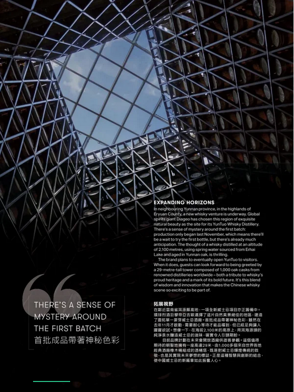 In neighboring Yunnan province, in the highlands of Eryuan County, a new whisky venture is underway. Global spirits giant Diageo has chosen this region of exquisite natural beauty as the site for its YunTuo Whisky Distillery.